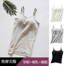 都市哺乳吊带背心免穿文胸孕妇孕期带胸垫保暖内衣喂奶上衣秋冬款