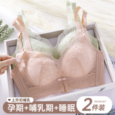 哺乳内衣文胸春秋薄款防下垂收副乳大码孕期产后喂奶上开扣胸罩