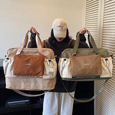 撞色运动健身包大容量手提短途旅行包女便携斜挎行李袋妈咪待产包