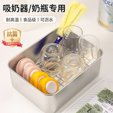 日本抗菌304不锈钢洗奶瓶专用盒背奶沥水架子清洗盆吸奶器收纳篮