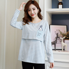 哺乳上衣t恤孕妇装春季新款外出辣妈打底衫潮妈喂奶月子服假两件
