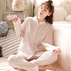 嫚熙秋冬空气棉月子服孕妇加厚夹棉睡衣产妇保暖哺乳家居服套装