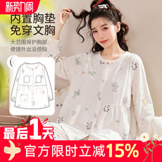 带胸垫春秋夏季纯棉薄款产后喂奶哺乳中长款睡裙月子服孕妇托腹裤
