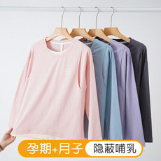 春秋纯棉哺乳短袖长袖月子服孕妇产后打底衫上掀喂奶服T恤可外穿