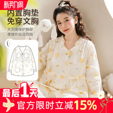 月子服春秋纯棉纱布产后哺乳孕妇睡衣春夏季薄款带胸垫产妇家居服