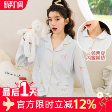 带胸垫三件套空气棉春秋冬季纯棉产后喂奶哺乳月子服孕妇睡衣加厚