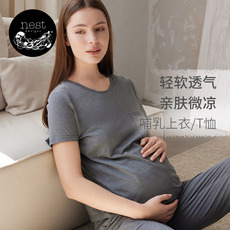 莫代尔棉月子服夏季薄款8月份产后大码孕妇睡衣带胸垫哺乳两件套7