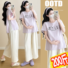 孕妇夏装套装时尚款外出哺乳裙子夏款大码上衣潮妈雪纺连衣裙夏季