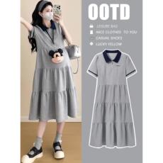 孕妇连衣裙夏款2023网红潮妈孕妇装夏季翻领T恤时尚洋气宽松裙子