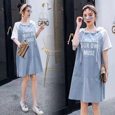 新品孕妇装夏天裙子夏季薄t款潮妈长裙宽松圆领T恤孕期修身短袖连