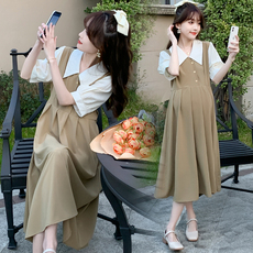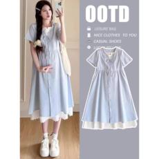 孕妇夏装连衣裙韩版时尚宽松假两件高级新中式遮肚潮妈减龄孕妇裙