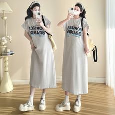 金豆豆超薄冰丝显瘦针织孕妇连衣裙夏季新款时尚款潮妈过膝长裙子