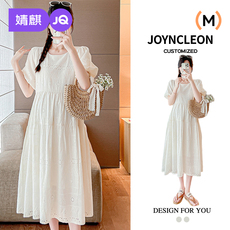 孕妇裙子夏装法式复古钩花刺绣过膝长裙宽松潮妈裙夏季孕妇连衣裙
