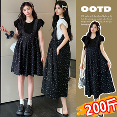 孕妇装夏季连衣裙雪纺拼接短袖大码裙子2026新款套装潮妈孕期穿搭