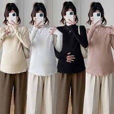 孕妇装秋冬德绒双面磨毛打皱款保暖上衣孕妈木耳边修身显瘦针织衫