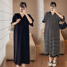 大码孕妇装连衣裙2026夏季新款薄款短袖翻领潮妈中长款裙子200斤