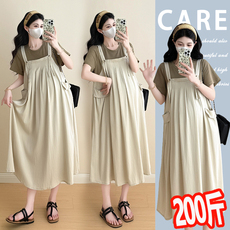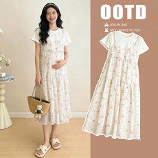 2026大码孕妇夏装连衣裙2026新款孕妇夏季中长款孕妇假两件连衣裙