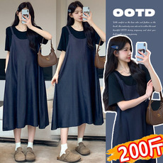 大码孕妇夏季新款时尚拼接气质鱼尾A字裙宽松显瘦遮肚连衣裙200斤