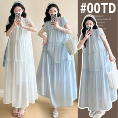 孕妇裙子夏装温柔风甜美宽松显瘦大码过膝潮妈长裙夏季薄款连衣裙