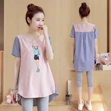 孕妇夏装套装时尚款外出哺乳裙子夏款大码上衣潮妈雪纺连衣裙夏季