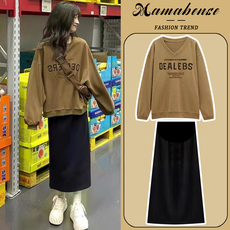 孕妇连衣裙早秋新款潮妈假两件卫衣裙韩版宽松时尚孕妇裙长袖套装