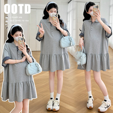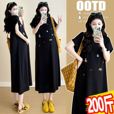 大码孕妇装夏季连衣裙206新款刺绣polo领洋气时髦小狗连衣裙200斤