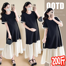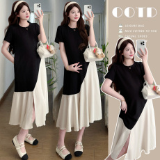 2026孕妇裙子夏装时尚拼接宽松显瘦过膝潮妈裙夏季薄款大码连衣裙
