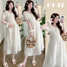 2026新款夏款孕妇装刺绣工艺宽松孕妇时尚减龄仙女裙气质连衣裙