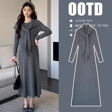 孕妇装秋装2024新款拼接假两件连衣裙孕妈高级感穿搭秋冬季两件套