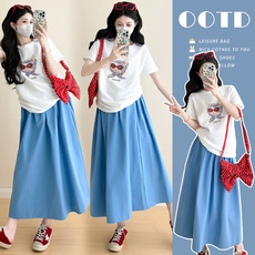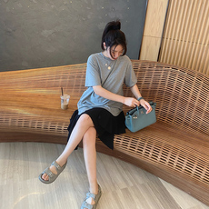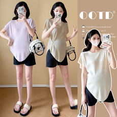 孕妇夏装时尚款潮妈洋气中长款宽松上衣t恤小个子外出休闲两件套