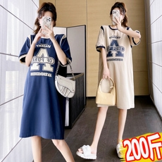 大码孕妇连衣裙2025夏装短袖T恤裙长款休闲宽松潮妈气质减龄200斤