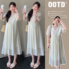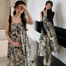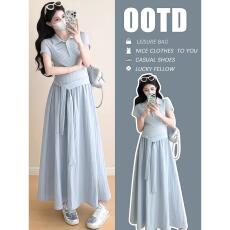 孕妇连衣裙夏装2025新款洋气外出时尚中长款韩版宽松休闲裙子潮妈