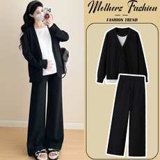 孕妇黑色套装春秋2026新款孕期穿搭时尚洋气针织毛衣裤子两件套女