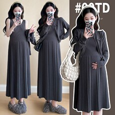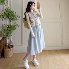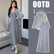 孕妇装2024新款秋装连衣裙两件套显瘦孕妈妈高级感穿搭秋冬季套装
