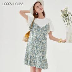 夏装孕妇碎花连衣裙假两件遮肚子高级感短袖宽松大码孕妈连衣裙夏