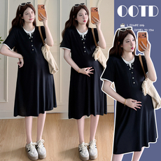 孕妇连衣裙夏季2025新款短袖polo领纯棉宽松大码遮肚孕妈高级穿搭