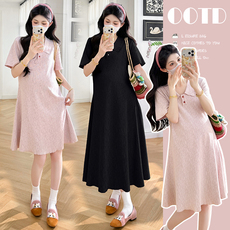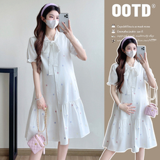 孕妇夏季穿搭夏装短袖孕妇连衣裙宽松大码中长款减龄时尚孕妈裙子