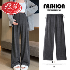 浪莎孕妇裤子春秋款外穿阔腿裤无托腹拖地裤糯米裤秋冬季孕妇秋装