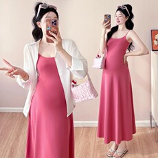 孕妇连衣裙套装春夏2026新款韩版宽松灰色翻领防晒衣吊带裙两件套