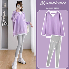 孕妇套装时髦时尚洋气紫色宽松休闲假两件上衣卫衣2026新款春秋冬