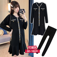 大码孕妇卫衣春秋连衣裙女韩版宽松减龄洋气披肩上衣中长款200斤