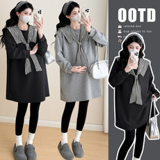 孕妇连衣裙套装休闲时尚遮肚卫衣条纹半身裙2026新款春秋两件套女