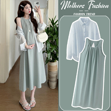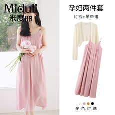 孕妇连衣裙2026新款春夏季孕妈高级感穿搭孕期法式背心裙两件套装