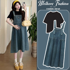 孕妇连衣裙套装2026新款粉色孕期穿搭甜美背带裙上衣春秋季两件套