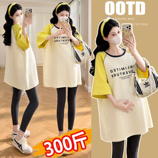 大码孕妇春装上衣2026新款夏季七分袖300拼色t恤衫宽松遮肚200斤