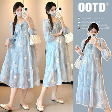孕妇裙子秋装2025新款气质减龄温柔过膝潮妈裙秋季休闲孕妇连衣裙