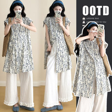 孕妇夏装连衣裙2026新款潮妈孕期穿搭碎花短袖裙子阔腿裤夏季套装
