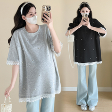 大码孕妇娃娃衫短袖上衣女夏季休闲套装2026小个子时尚宽松200斤