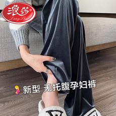 浪莎孕妇裤子春秋加绒外穿直筒抽绳金丝绒阔腿裤秋冬休闲宽松秋装