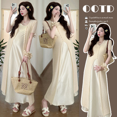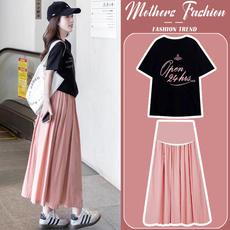孕妇连衣裙套装夏季2026新款显瘦高级感薄款短袖上衣半身裙两件套